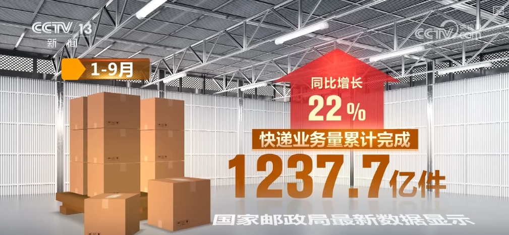 記者從國家郵政局獲悉,前三季度,我國郵政行業(yè)寄遞業(yè)務量完成1376.7億件,同比增長19.6%。其中,快遞業(yè)務量累計完成1237.7億件,同比增長22%。