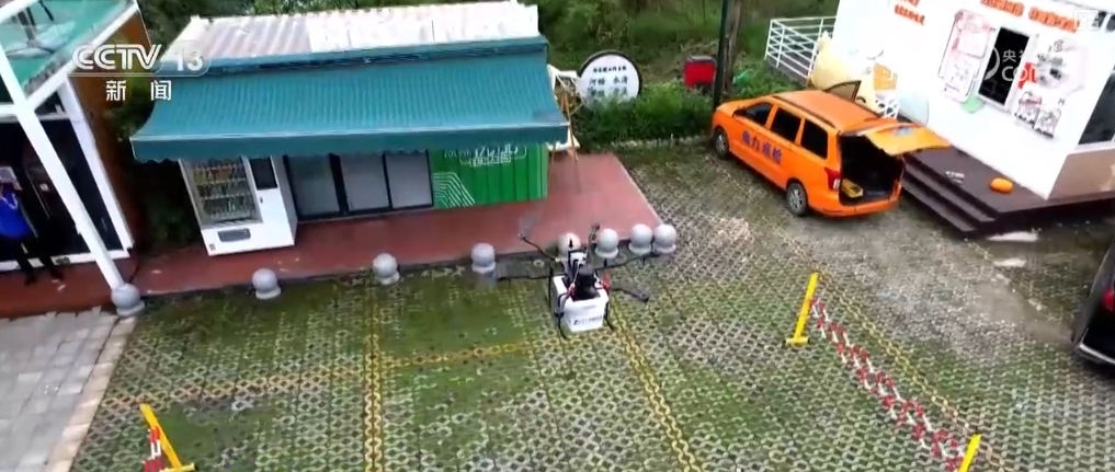 在成都市新都區(qū)的一處快遞分揀中心前,隨著操作人員在控制臺按下指令,載著快遞包裹的無人機轉動旋翼、騰空而起,按照設定航線,飛越17公里的農田山林。20分鐘后,無人機緩緩降落在清流鎮(zhèn)水梨村。住在附近的村民張女士在收到快遞短信后來到快遞驛站,取出了自己的包裹。