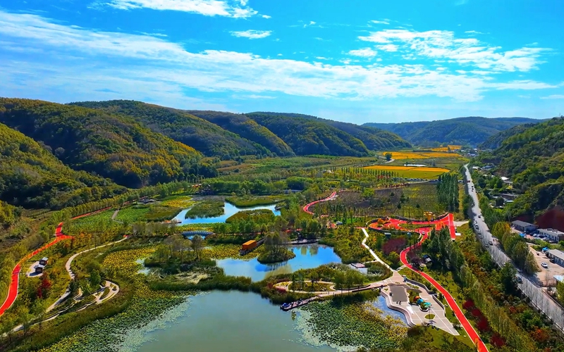 環(huán)境越變?cè)胶?,日子越過(guò)越舒心?!吧鷳B(tài)紅利”惠及了濕地公園不遠(yuǎn)處的桃寶峪村。