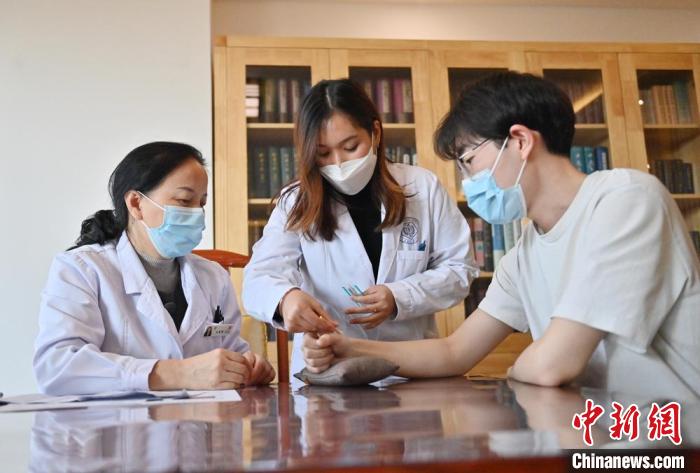 診室里,林玉花拿出針灸針,運(yùn)用捻轉(zhuǎn)與提插等手法為患者針灸治病。經(jīng)過老師悉心指導(dǎo),這位“95后”泰國(guó)女孩已經(jīng)熟練掌握針灸、拔罐等中醫(yī)治療手段。