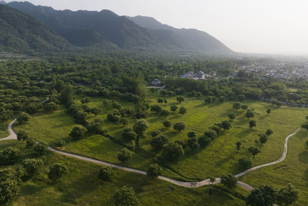 西安市長安區(qū)子午街道南豆角村的板栗古樹群(2024年5月15日攝,無人機(jī)照片)。新華社記者 邵瑞 攝