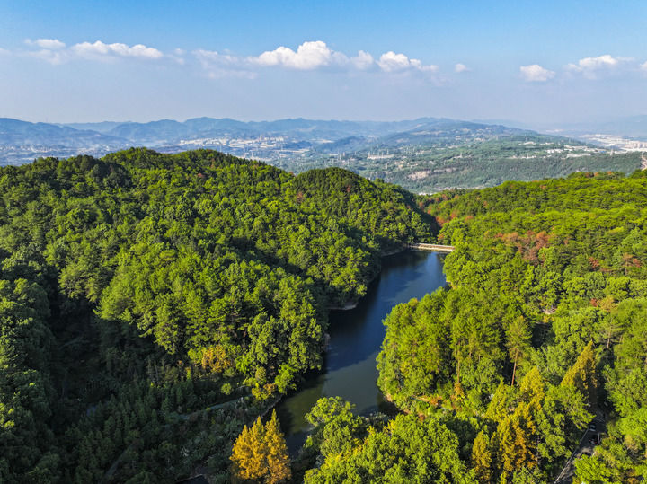 這是2024年10月15日在重慶市北碚區(qū)拍攝的縉云山國家級自然保護(hù)區(qū)景象(無人機(jī)照片)。新華社記者 王全超 攝
