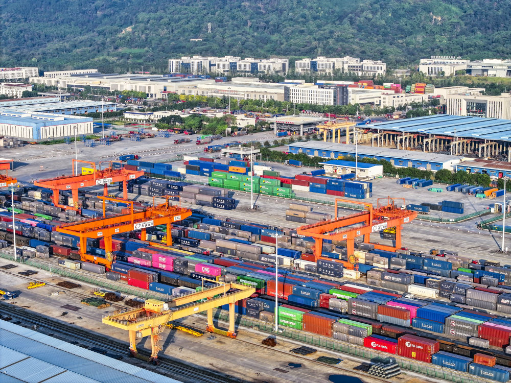 重慶國際物流樞紐園區(qū)包含團(tuán)結(jié)村中心站、西部陸海新通道重慶無水港、重慶鐵路口岸等片區(qū),是中歐班列始發(fā)地、西部陸海新通道策源地,目前已開通班列線路62條,通達(dá)全球125個國家和地區(qū)的542個港口,成為我國南向西向高水平對外開放的重要樞紐。