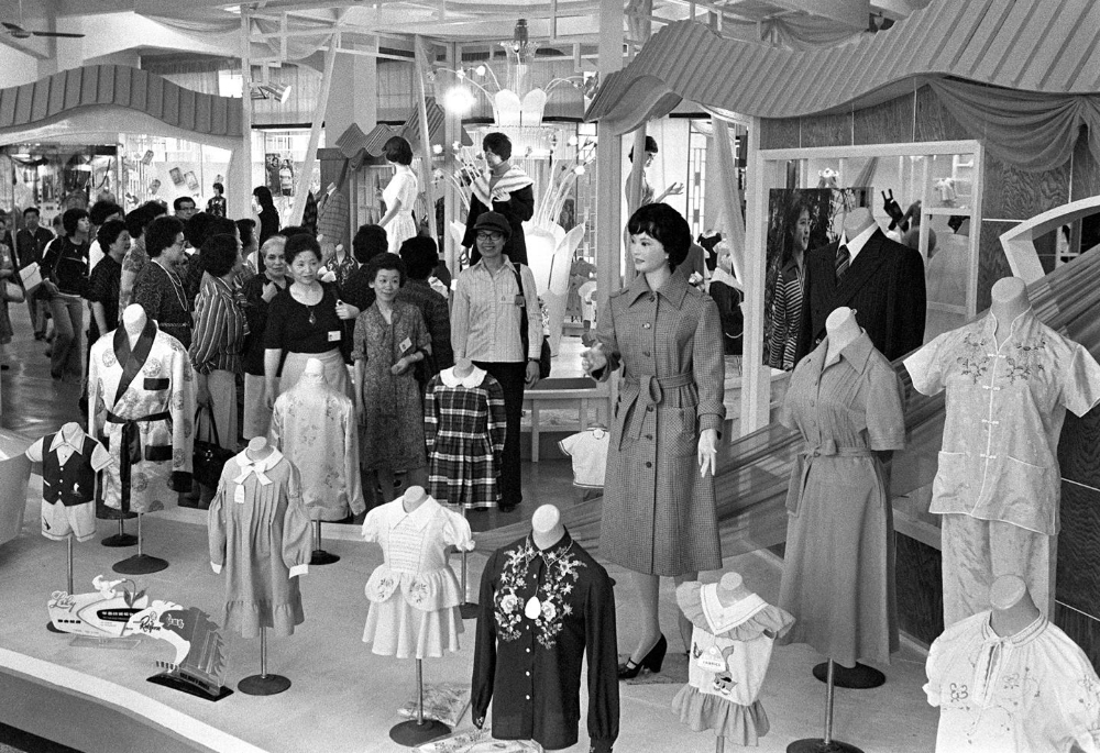 1979年第45屆廣交會(huì)上展售的各種服裝。新華社記者 李燕明 攝