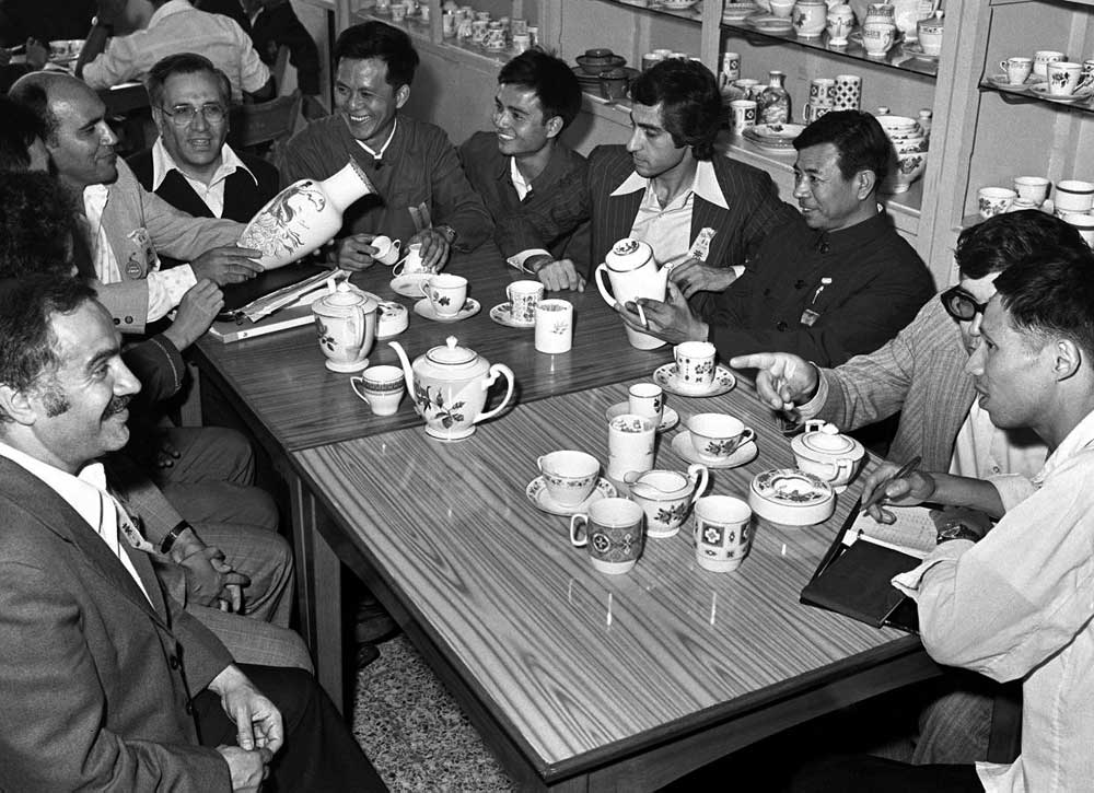 1978年,伊朗客商在第44屆廣交會(huì)上選購(gòu)中國(guó)瓷器。新華社記者 黃鑒秋 攝