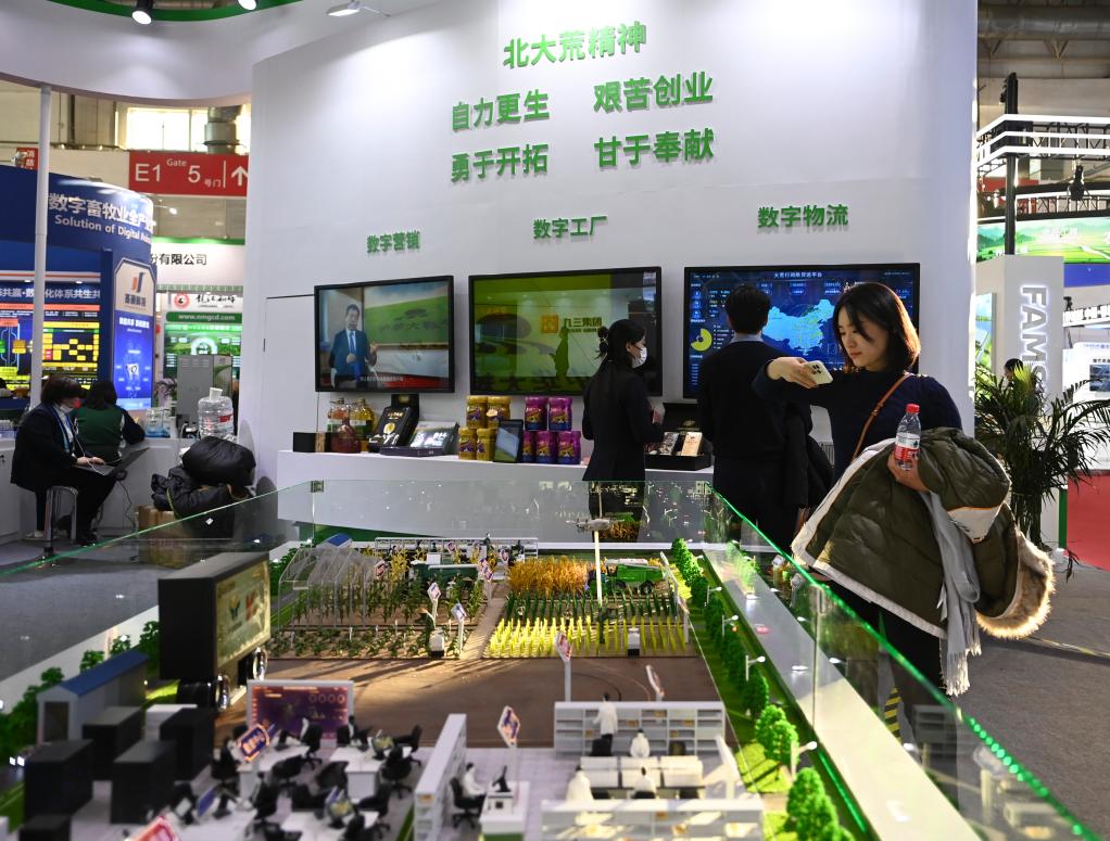 2023年11月30日,參觀者在首屆中國(guó)國(guó)際供應(yīng)鏈促進(jìn)博覽會(huì)(簡(jiǎn)稱“鏈博會(huì)”)綠色農(nóng)業(yè)鏈展區(qū)北大荒集團(tuán)展臺(tái)前觀看智慧育種解決方案。新華社記者 蔡湘鑫 攝