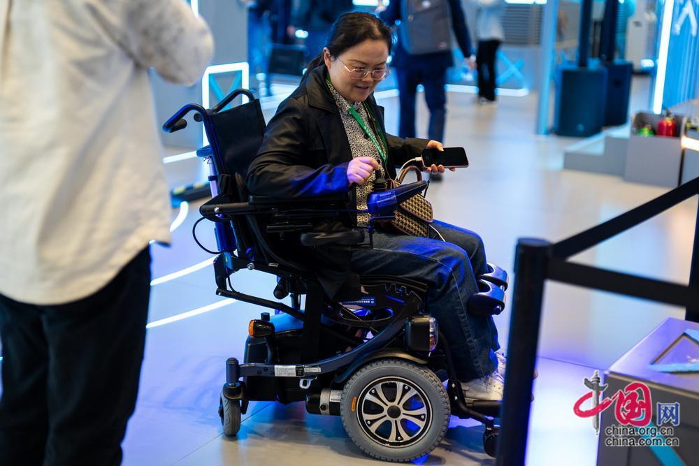 觀眾在現(xiàn)場(chǎng)體驗(yàn)智能輪椅。中國(guó)網(wǎng)記者