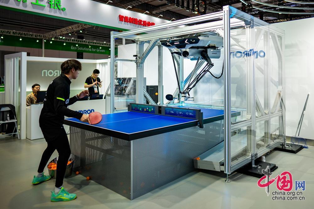 乒乓球教練機(jī)器人打球。中國(guó)網(wǎng)記者