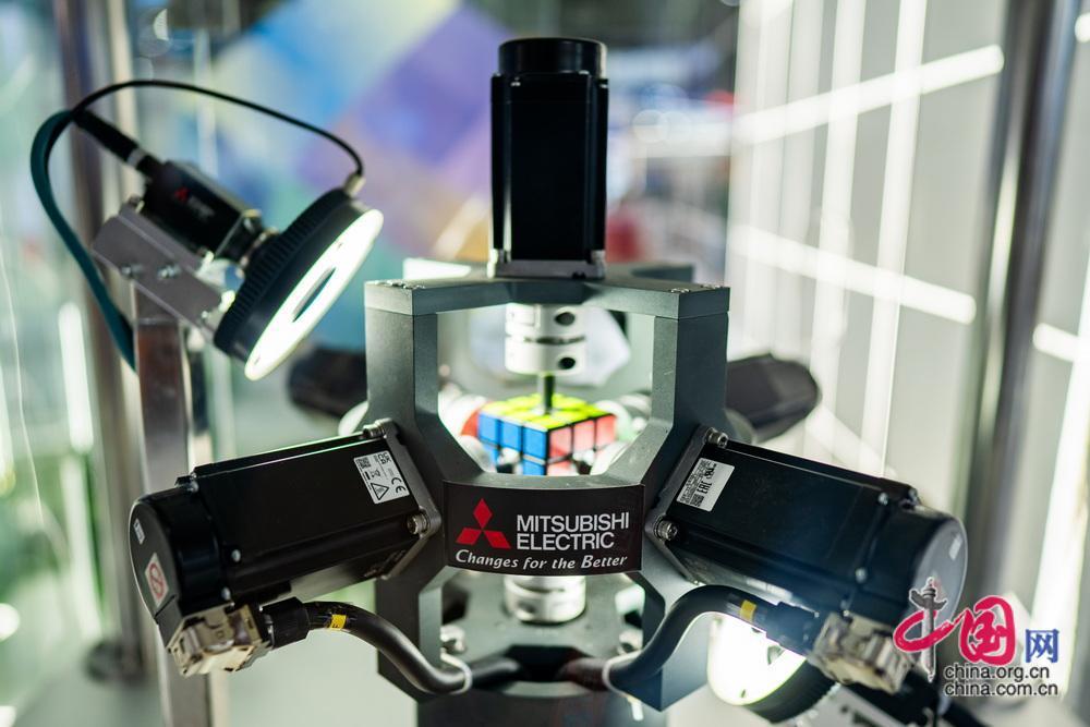 三菱帶來(lái)的魔方機(jī)器人,該機(jī)器人曾打破魔方復(fù)原吉尼斯世界紀(jì)錄。中國(guó)網(wǎng)記者