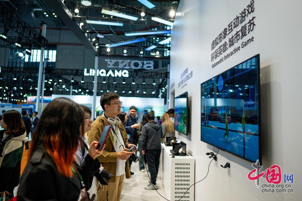 觀眾體驗(yàn)虛擬形象互動(dòng)游戲。中國(guó)網(wǎng)記者