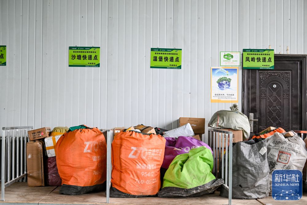 11月10日,村民景文仙在隆德縣奠安鄉(xiāng)梁堡村快遞服務(wù)點(diǎn)取快遞。