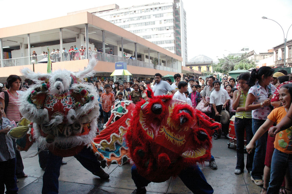2006年1月28日農(nóng)歷除夕當(dāng)天,華僑舞獅團在秘魯利馬唐人街上舞獅拜年。