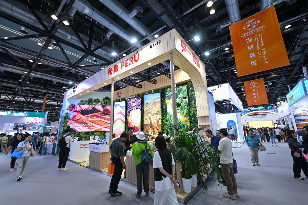 這是2024年9月15日在北京服貿(mào)會國家會議中心展區(qū)拍攝的秘魯展臺。