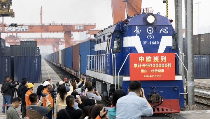 2024年11月15日10時(shí)20分,中歐班列第10萬班列車從重慶發(fā)出