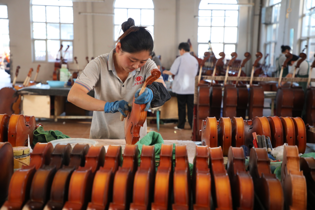高峰時(shí)節(jié),東高村鎮(zhèn)每年生產(chǎn)的提琴達(dá)30萬支,約占全球銷量的三分之一,銷往全球40多個(gè)國(guó)家和地區(qū),年產(chǎn)值超過7000萬元。