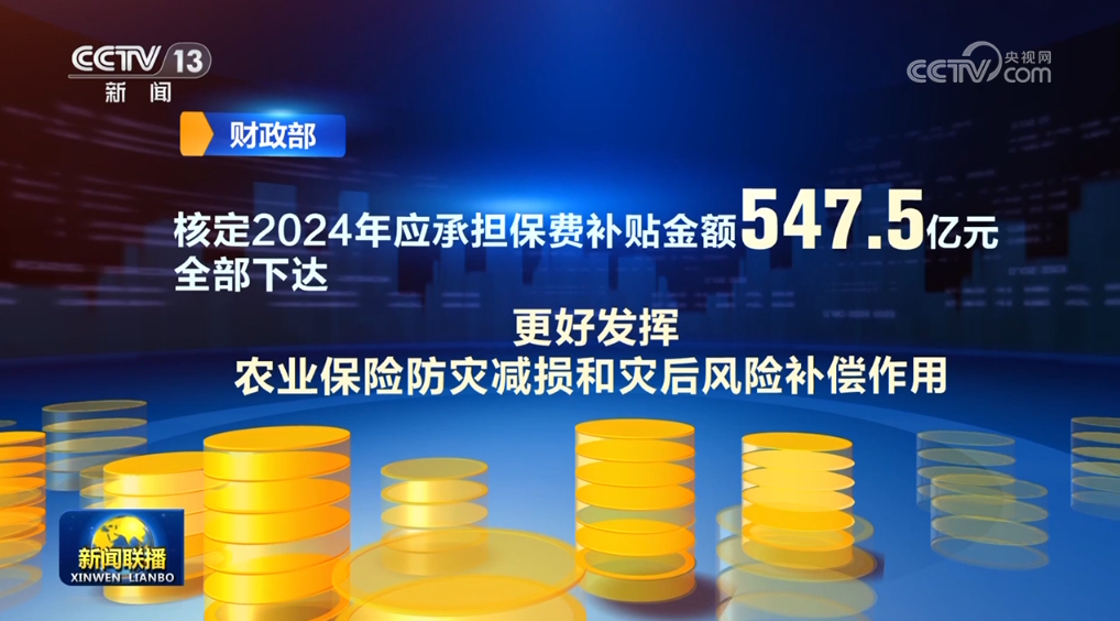 2024年中央財(cái)政農(nóng)業(yè)保險(xiǎn)保費(fèi)補(bǔ)貼全部下達(dá)