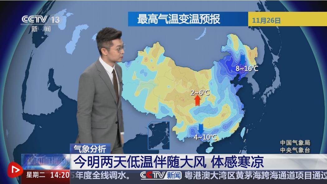 中國氣象局氣象分析師胡嘯表示,寒潮天氣過程將會在11月28日前后趨于結(jié)束,但是在結(jié)束之前仍要關(guān)注大風(fēng)降溫和強降雪天氣。26日早晨相比25日同一時刻,中東部大部地區(qū)氣溫已經(jīng)出現(xiàn)明顯的下降,體感寒涼。