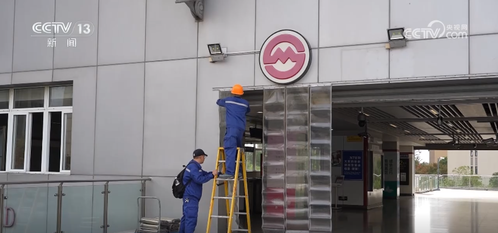 在上海軌道交通11號線白銀路站1號口,物業(yè)師傅們正在安裝擋風門簾。檢修人員也第一時間排查空調等設備,并做好防凍應對措施。