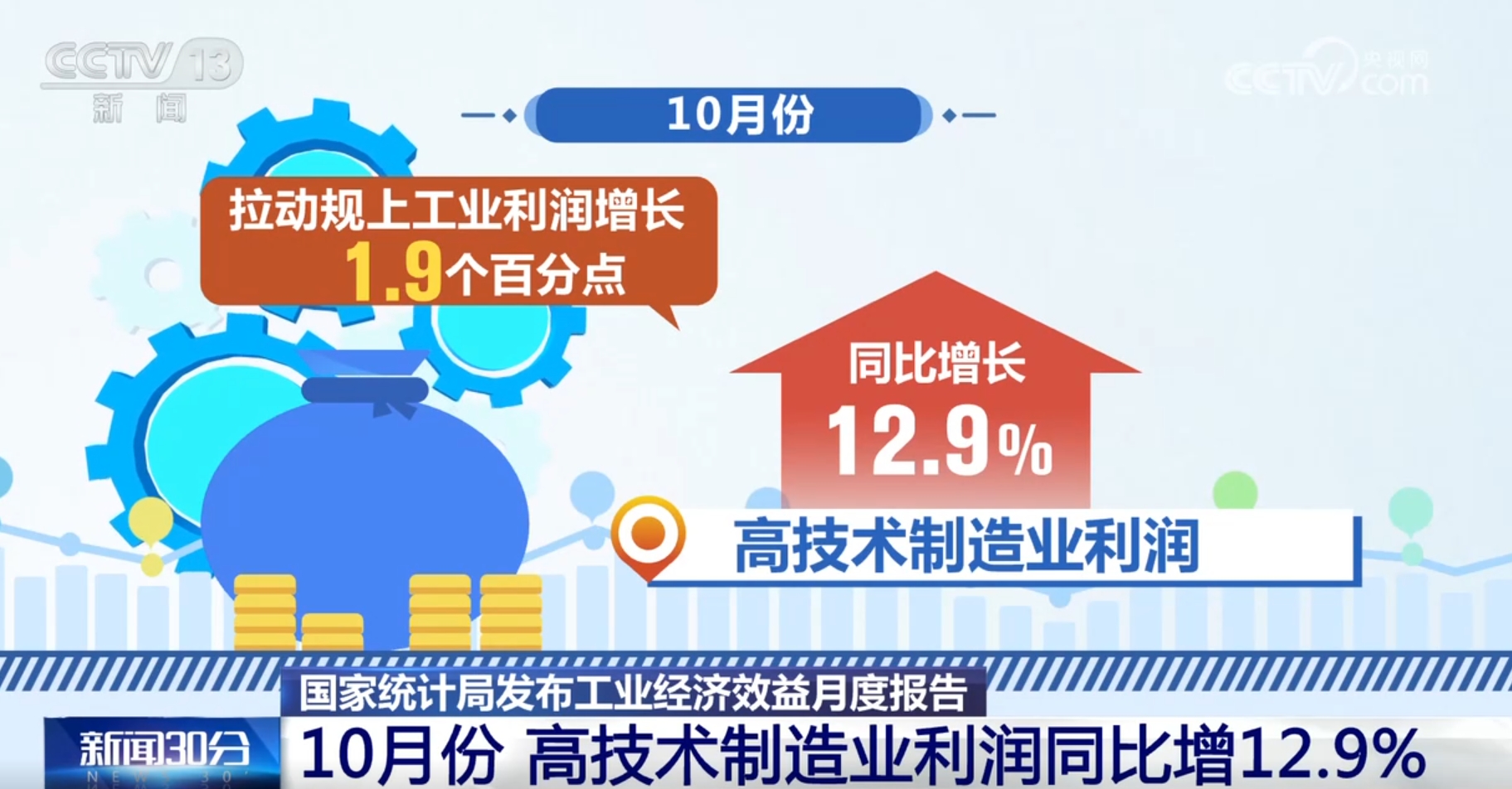 高技術(shù)制造業(yè)支撐和帶動作用顯現(xiàn),10月份,高技術(shù)制造業(yè)利潤同比增長12.9%,拉動規(guī)上工業(yè)利潤增長1.9個百分點。其中,可穿戴智能設(shè)備制造、敏感元件及傳感器制造等行業(yè)利潤同比分別增長73.3%、48.8%。