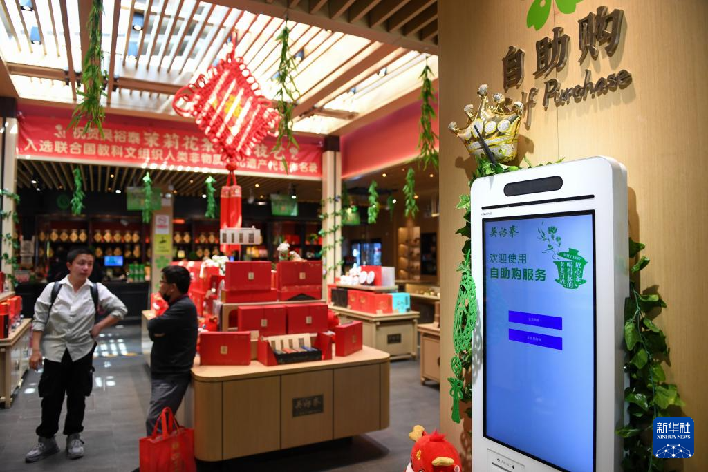 在吳裕泰北新橋總店內設置的自助購(4月16日攝)。新華社記者 鞠煥宗 攝
