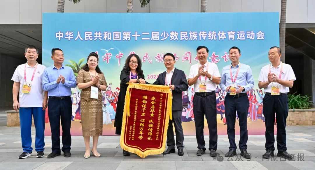 向第十二屆全國少數(shù)民族傳統(tǒng)體育運動會執(zhí)行工作委員會贈送錦旗