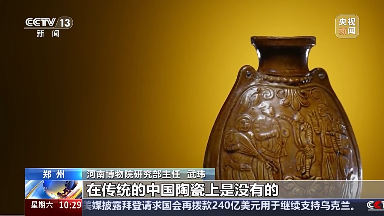 河南博物院研究部主任 武瑋:這種題材實際上在傳統(tǒng)的中國陶瓷上是沒有的。北朝的時期整個社會對它的一種崇尚或者一種喜好,才會出現(xiàn)這樣一個題材,整個中西方的交流在深入發(fā)展。
