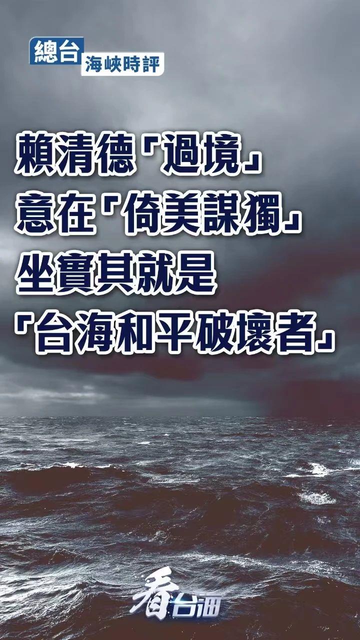賴清德借竄訪太平洋島國(guó)之機(jī)“過(guò)境”夏威夷,對(duì)此,外交部、國(guó)臺(tái)辦日前接連批駁。國(guó)臺(tái)辦發(fā)言人陳斌華表示,我們堅(jiān)決反對(duì)美臺(tái)官方往來(lái),堅(jiān)決反對(duì)臺(tái)灣地區(qū)領(lǐng)導(dǎo)人以任何名義、任何理由“過(guò)境”美國(guó)。近年來(lái)臺(tái)灣當(dāng)局領(lǐng)導(dǎo)人竄訪所謂“邦交國(guó)”只是“掛羊頭”,“過(guò)境”美國(guó)才是真正想賣的“狗肉”。賴清德此次“過(guò)境”亦是如此,真正的目的是企圖“倚美謀獨(dú)”,也再度坐實(shí)其是徹頭徹尾的“臺(tái)海和平破壞者”。