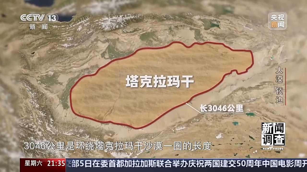 2023年6月,習(xí)近平總書記在內(nèi)蒙古巴彥淖爾市主持召開加強荒漠化綜合防治和推進“三北”等重點生態(tài)工程建設(shè)座談會,強調(diào)要打好河西走廊——塔克拉瑪干沙漠邊緣阻擊戰(zhàn)等三大戰(zhàn)役。3046公里,是環(huán)繞塔克拉瑪干沙漠一圈的長度。過去40多年,依托“三北”防護林體系工程建設(shè),塔克拉瑪干沙漠周邊已形成長達2761公里的綠色阻沙防護帶。截至2023年底,還剩285公里的空白區(qū)。塔克拉瑪干沙漠邊緣阻擊戰(zhàn)的首要任務(wù),就是要補齊缺口,給沙漠“鎖邊”。