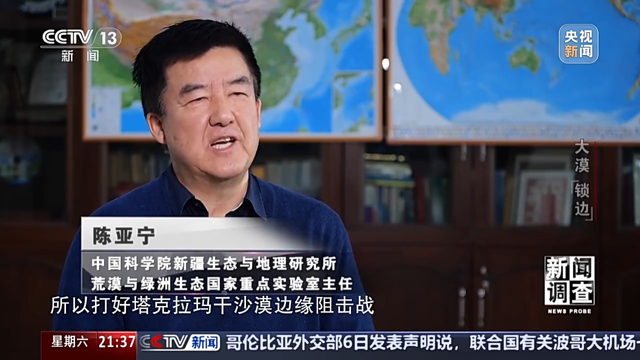 中國科學(xué)院新疆生態(tài)與地理研究所荒漠與綠洲生態(tài)國家重點實驗室主任 陳亞寧:和田地區(qū)大概就是256萬人,由于人均耕地面積少,經(jīng)濟發(fā)展相對也滯后。也是脫貧攻堅成果鞏固和拓展難度最大的一個區(qū)域,所以在打好塔克拉瑪干沙漠邊緣阻擊戰(zhàn),對和田地區(qū)的經(jīng)濟社會發(fā)展、農(nóng)民增收是有著重要意義的。我們帶著隊伍進行了將近兩個多月的實體調(diào)研,那我們調(diào)查什么呢?第一這里的地理環(huán)境、自然生態(tài)條件、水資源情況,同時我們也收集到他們當?shù)剡@么多年防沙治沙的一些成功經(jīng)驗和教訓(xùn),我們也進行了訪談,結(jié)果我們就提出了一種從不同生態(tài)條件、不同沙害和不同水源條件下如何防沙治沙,實現(xiàn)沙漠鎖邊等一些建議、措施和總體規(guī)劃。
