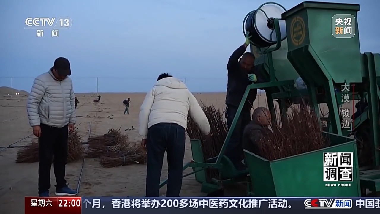 新疆于田縣林業(yè)和草原局黨組書記、副局長 賈存鵬:首先我們要到實地去勘測,只要能有水的,我們?nèi)渴巧镏紊?,沒水的地方是草方格和高立式沙障治沙。
