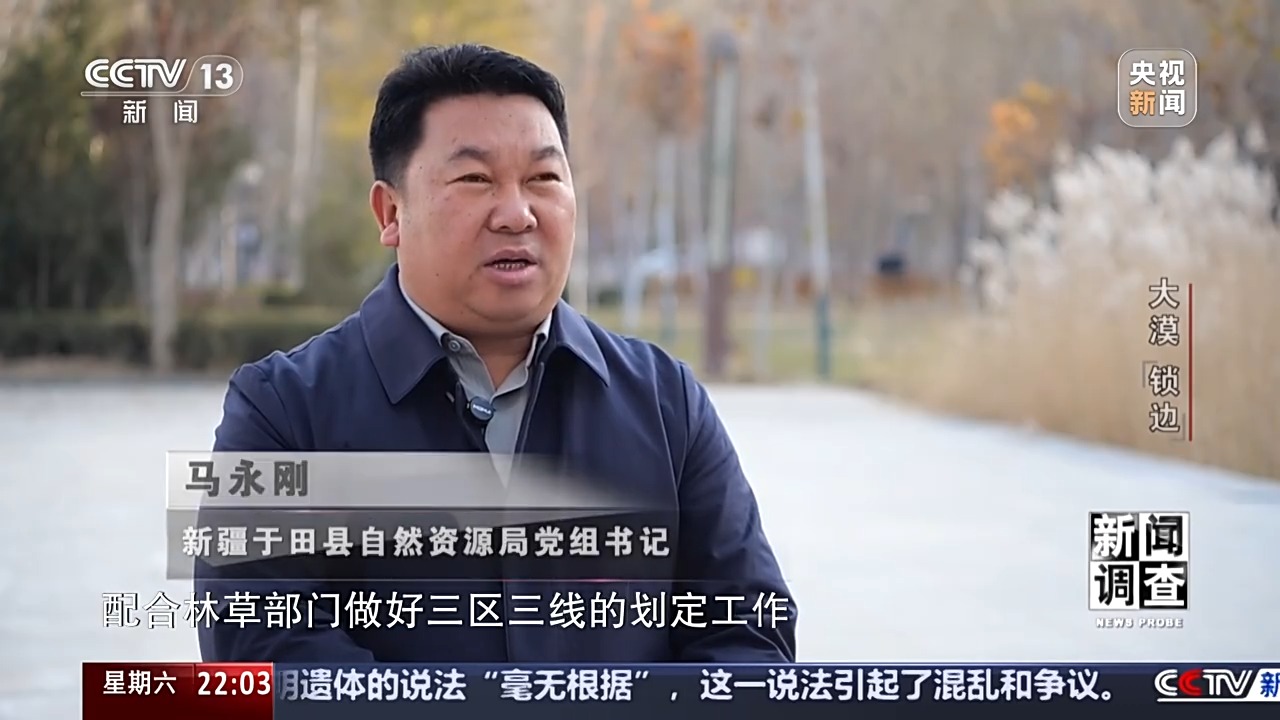 新疆于田縣自然資源局黨組書記 馬永剛:于田縣自然資源局在塔克拉瑪干阻擊戰(zhàn)承擔(dān)的就是項目的選址預(yù)審,配合林草部門做好三區(qū)三線的劃定工作,三線主要審核了在我們的塔克拉瑪干防沙治沙范圍內(nèi)是否占用了基本農(nóng)田,是否占用了生態(tài)紅線,是否存在有礦產(chǎn)壓覆的現(xiàn)象,是否存在一些相關(guān)的土地糾紛問題,進行嚴格復(fù)核,并由林草、水利等相關(guān)部門同步出具相關(guān)的意見。