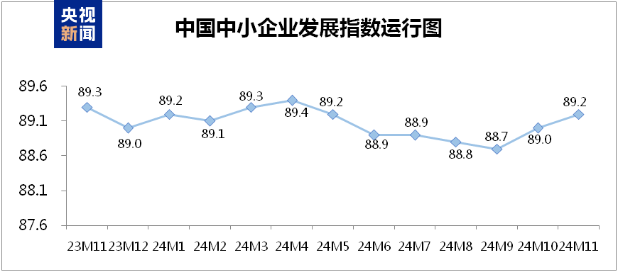 中國(guó)中小企業(yè)協(xié)會(huì)今天(10日)發(fā)布,11月中國(guó)中小企業(yè)發(fā)展指數(shù)為89.2,相比10月上升0.2點(diǎn),連續(xù)2個(gè)月上升。