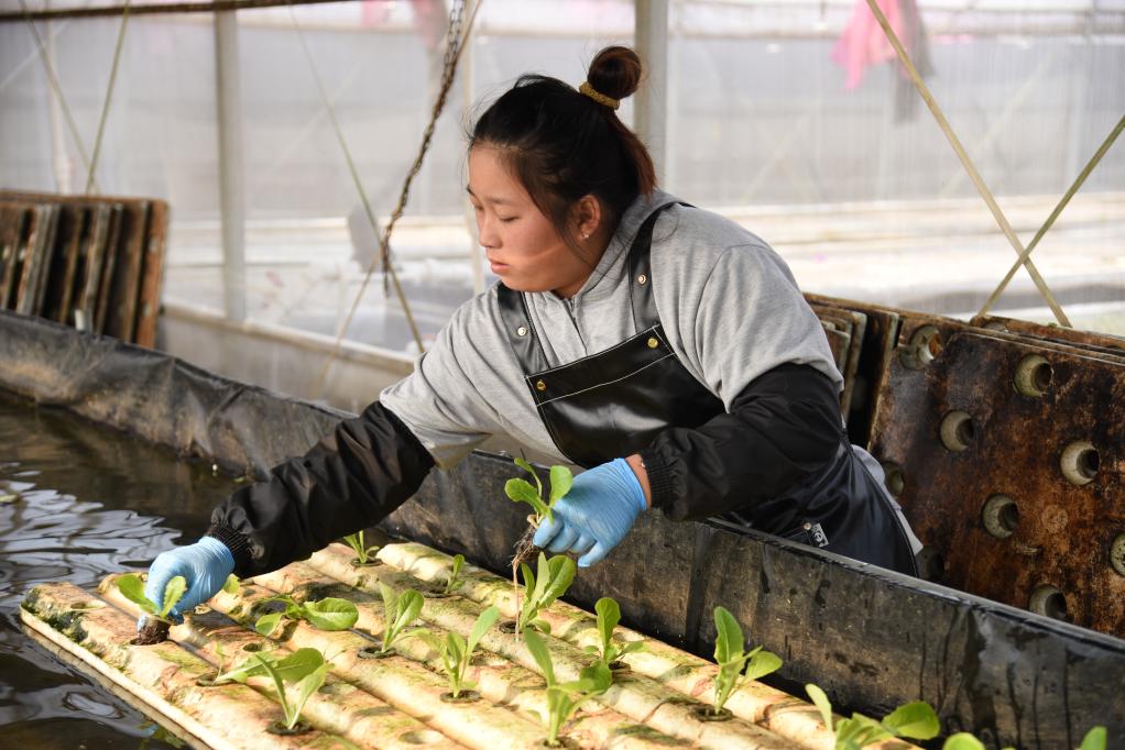 11月28日,在孫振鴻的農(nóng)場(chǎng)里,一名工人正在種植有機(jī)蔬菜。新華社記者 洪澤華 攝