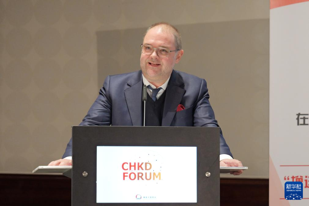 12月5日,德國聯(lián)邦勞動(dòng)及社會(huì)事務(wù)部國際勞動(dòng)及社會(huì)政策司司長卡斯頓·施滕德爾在柏林舉行的德國中國商會(huì)2024年度論壇上發(fā)表講話。新華社記者 邰思聰 攝
