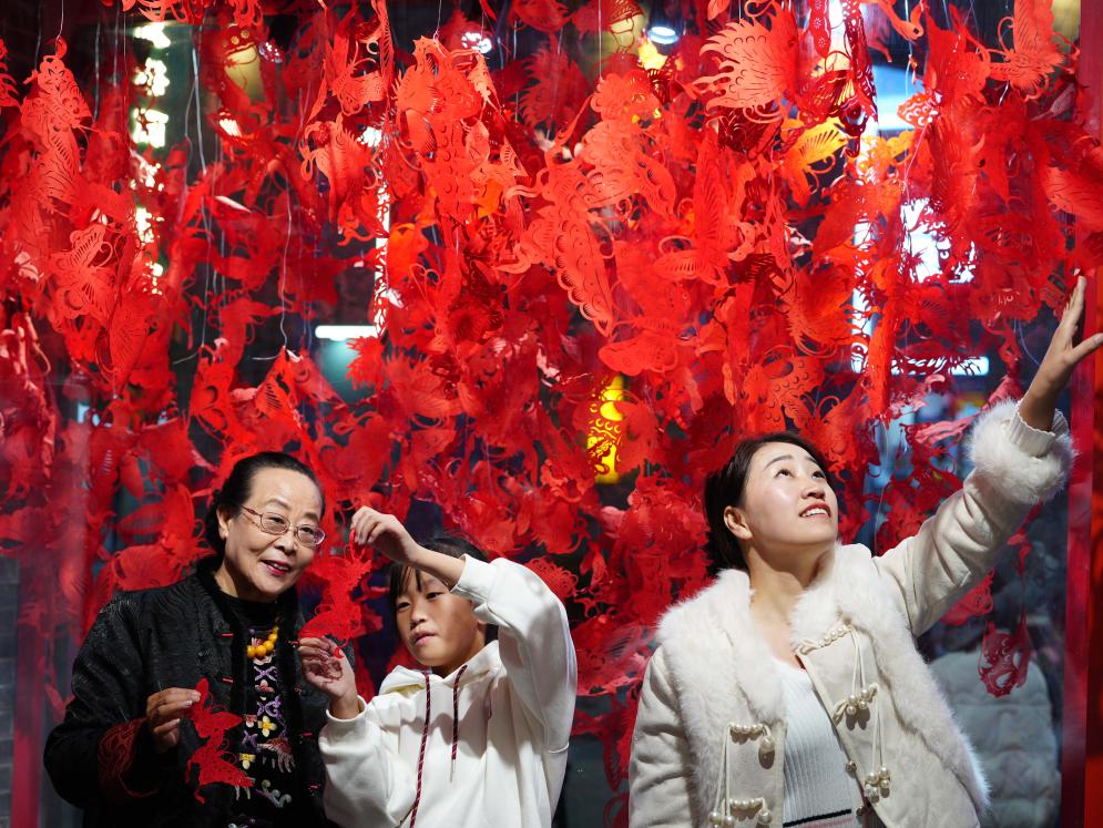 11月23日,市民在石家莊市新華區(qū)灣里廟步行街參觀非遺工作室。河北省石家莊市著力培育夜經濟新場景新業(yè)態(tài),打造集美食、娛樂、購物、非遺等于一體的夜經濟消費圈,豐富市民夜生活。新華社發(fā)(閆志國攝)