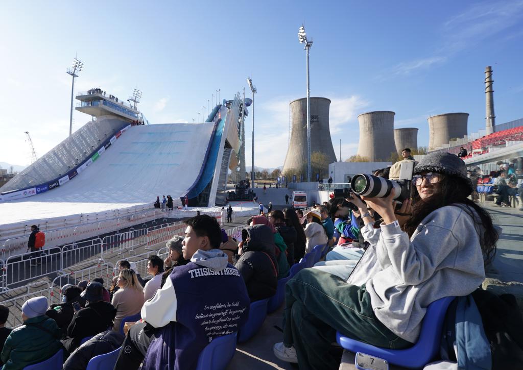 11月30日,觀眾在首鋼大跳臺觀看2024-2025賽季國際雪聯單板及自由式滑雪大跳臺世界杯北京站比賽。新華社記者 張晨霖 攝