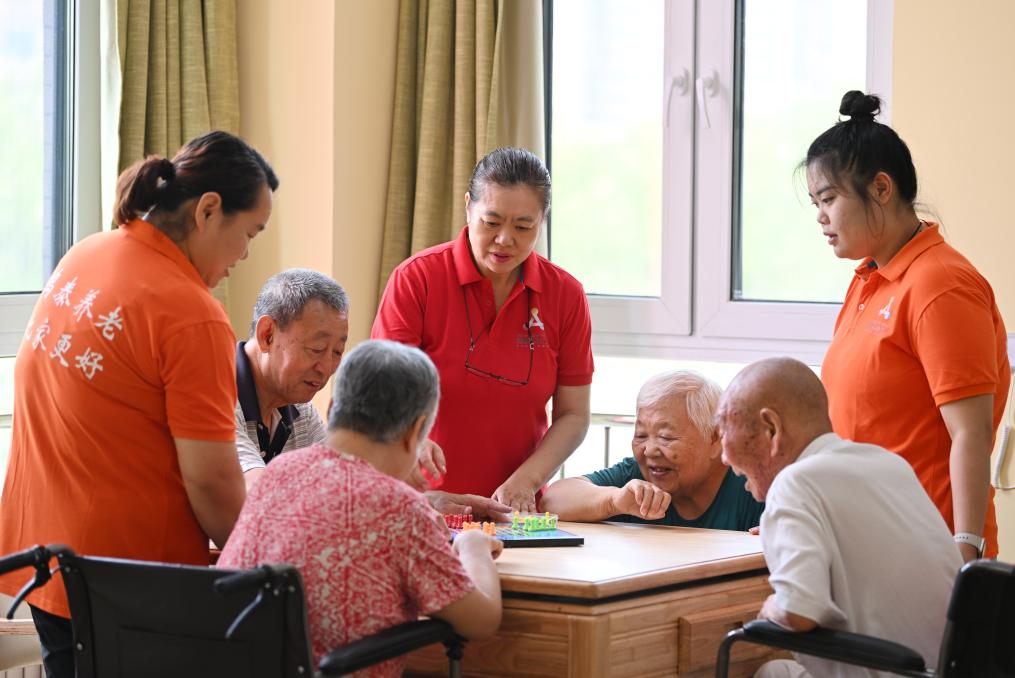 老人們在天津西青區(qū)第一養(yǎng)老院的棋牌室內(nèi)活動(dòng)。新華社記者李然 攝