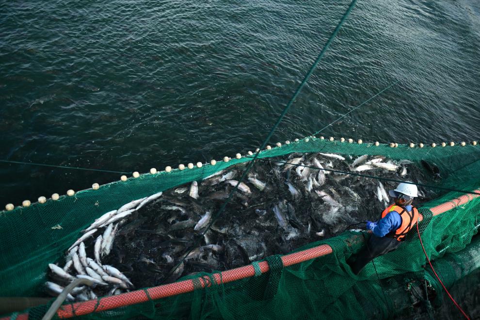“傳統(tǒng)吊網(wǎng)捕撈會讓虹鱒魚體內(nèi)因緊張產(chǎn)生更多肌酸。我們現(xiàn)在用吸魚泵連魚帶水直接送入車間,保證魚肉質(zhì)鮮嫩。”他說。