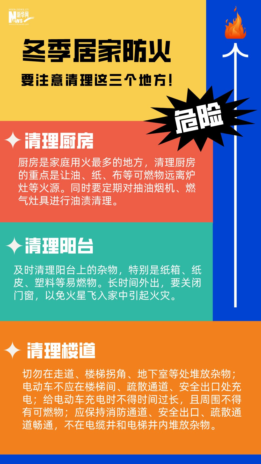 男子在家中用火盆取暖時,不慎引燃身上衣物;女子在電暖器上晾衣服引發(fā)火災(zāi);母子二人因在家中燒煤取暖、通風(fēng)不暢導(dǎo)致一氧化碳中毒......冬季天氣寒冷干燥,晝夜溫差大,生活用火、用氣、用電增加。若疏忽大意,極易引發(fā)火災(zāi)。安全過冬,居家防火這些細(xì)節(jié)要注意。