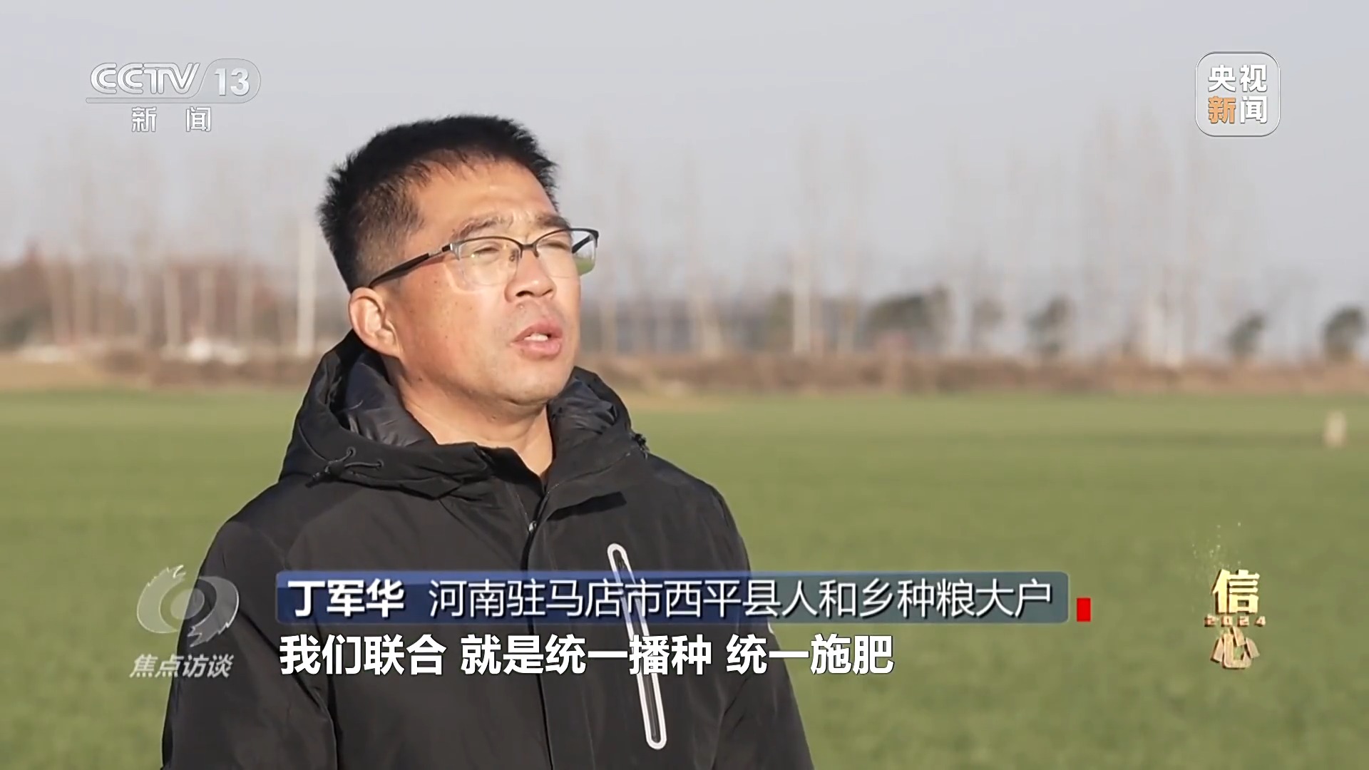河南駐馬店市西平縣仁和鄉(xiāng)種糧大戶(hù) 丁軍華:“我們聯(lián)合就是統(tǒng)一播種、統(tǒng)一施肥、統(tǒng)一管理、統(tǒng)一打藥、統(tǒng)一購(gòu)銷(xiāo)和統(tǒng)一收割,做到了‘六統(tǒng)一’,共同抱團(tuán)去跟廠家談判、爭(zhēng)取最低的價(jià)格。這一次小麥播種,我們從黑龍江引進(jìn)大型氣吸型播種機(jī),地少了它不來(lái),用這種播種機(jī),一畝地比普通播種機(jī)增產(chǎn)15%以上?!?/p>