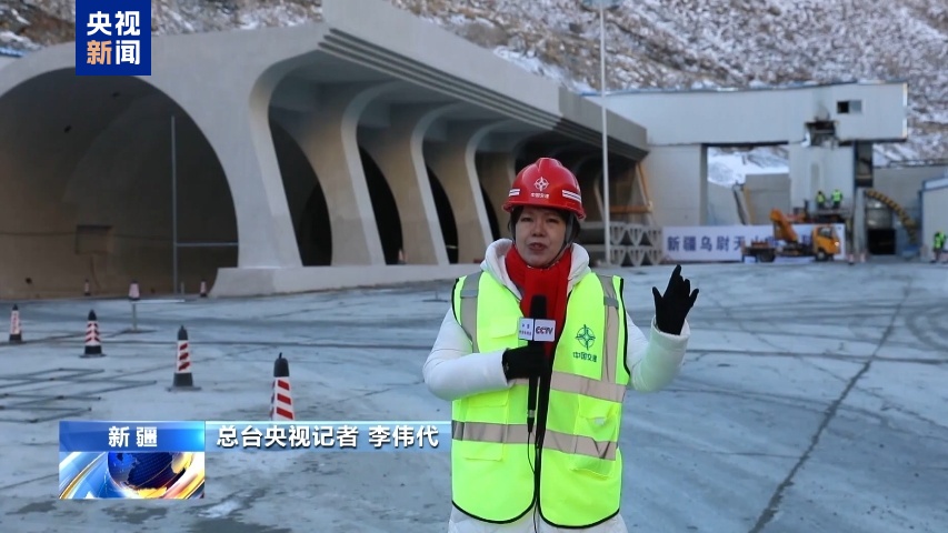 總臺央視記者 李偉代:這里是海拔2800多米的天山勝利隧道施工現場。現在正是中午,一天中氣溫最高的時候,但氣溫也只有零下22攝氏度。我身后就是天山勝利隧道在天山北麓的進口端,隧道就是從這里穿越天山,一直打過去到南麓。大家可以看到三個洞口依次排列,未來從烏魯木齊方向開車去庫爾勒,從這個洞口20分鐘就可以穿過隧道。如果從庫爾勒北上來烏魯木齊,車輛就從這個隧道口出來。中間的中導洞通車后將用于應急救援等服務。