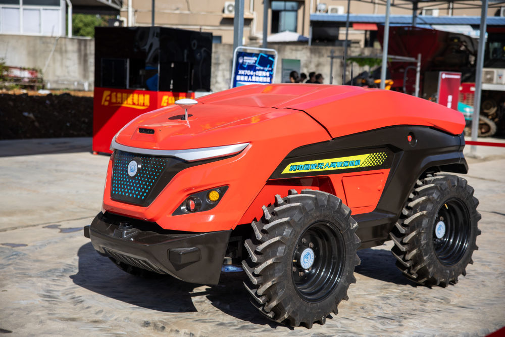2024年11月26日在湖南省農(nóng)業(yè)裝備研究所試驗(yàn)基地拍攝的純電智能無人駕駛拖拉機(jī)。新華社記者 陳思汗 攝