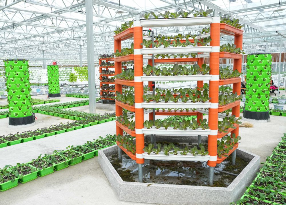 走進(jìn)浙江舟山岱山現(xiàn)代農(nóng)業(yè)產(chǎn)業(yè)園區(qū)內(nèi)的溫室大棚,無土栽培的蔬果層層疊疊,鋪展開來,散發(fā)出誘人光澤。