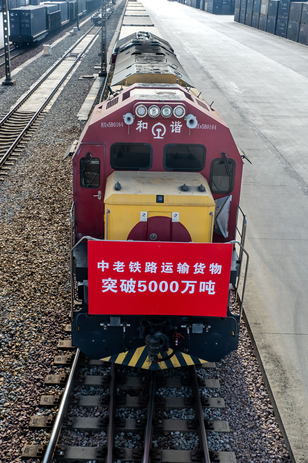 這標志著自2021年12月3日全線開通運營以來,中老鐵路貨物運輸總量突破5000萬噸大關,其中跨境貨物1158萬噸。2024年,中老鐵路運輸貨物總量達1960萬噸,日均保持在5萬噸以上。