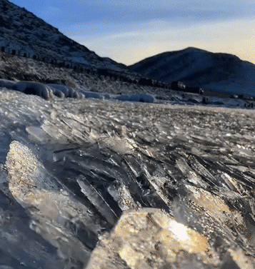 冰推是一種自然現(xiàn)象,一般發(fā)生在寒冷的冬季,藍(lán)色的湖面上無(wú)數(shù)散落的冰塊,在風(fēng)力作用下,如“潮水”般不斷涌向岸邊,冰塊隨著波浪起伏相互碰撞,發(fā)出清脆的聲音,伴隨著風(fēng)聲,猶如大自然的“鳴唱”。