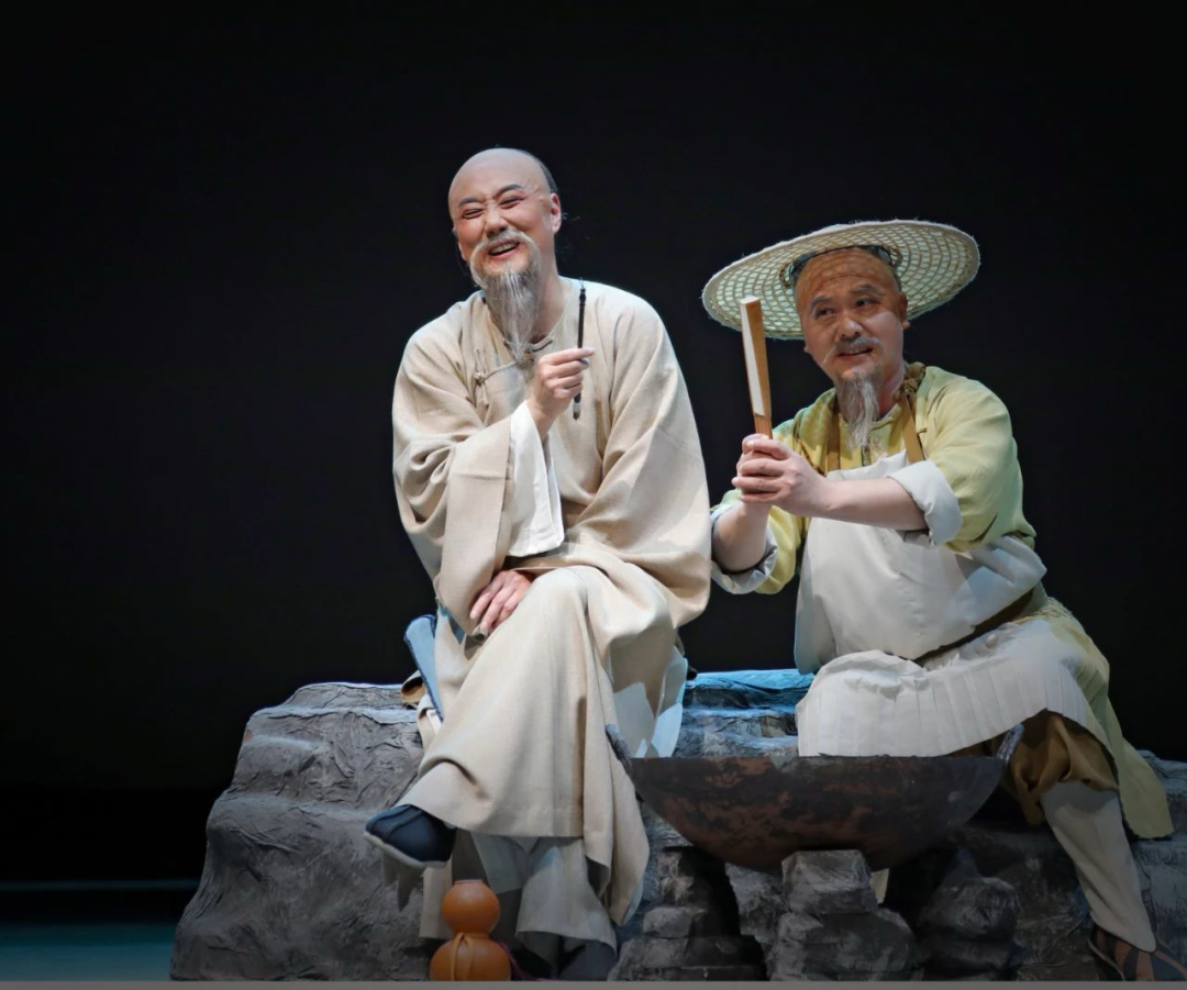 李政成的精湛表演則使創(chuàng)作完美閉環(huán)。在描繪鄭板橋繪畫菊花與蘭花的情景時,他巧妙地采用了文戲武唱的手法,別具匠心地展現(xiàn)了鄭板橋的才華與骨氣。而在劇終部分,長達(dá)十多分鐘、包含56個核心唱段的唱腔如波浪般層層推進(jìn),將鄭板橋一生的感悟推至觀眾心底。舞臺上的清冷視覺效果與演員熾熱的情感表達(dá)形成了鮮明的對比,在戲劇的張力中,一個有溫度、有深度、有情懷的鄭板橋仿佛從歷史中走來,真正“活”了起來。