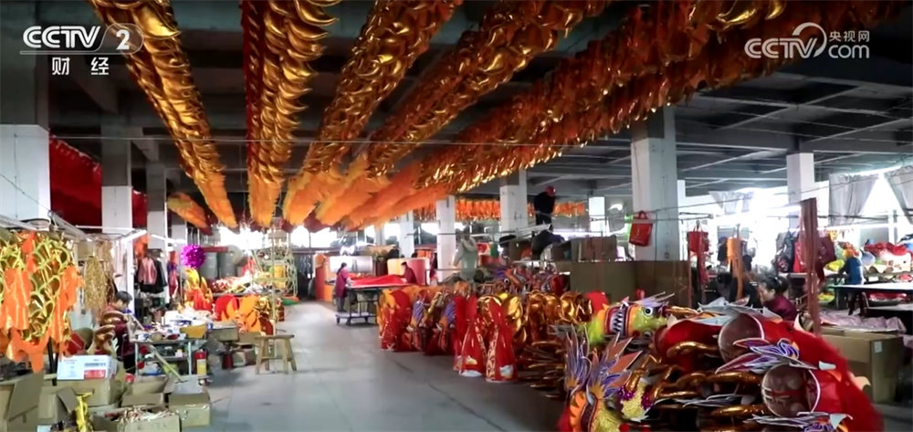 在江西南昌青云譜區(qū)的一家龍燈生產(chǎn)基地,數(shù)百平方米的廠房內(nèi)設(shè)置了龍頭、龍身、龍衣、龍尾等制作區(qū)域,50多名工人都在有條不紊地作業(yè)。在發(fā)貨區(qū),師傅們忙著按訂單裝貨打包。