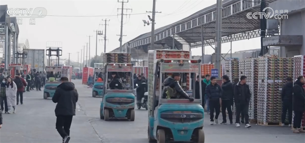 這家果蔬市場最近迎來了進(jìn)口水果的銷售高峰。在車?yán)遄咏灰讌^(qū)域,車輛和人員熙熙攘攘。最近每天都要從早上七點營業(yè)到晚上十一點左右。從現(xiàn)在到春節(jié)期間,將是這里一年中最繁忙的時段。