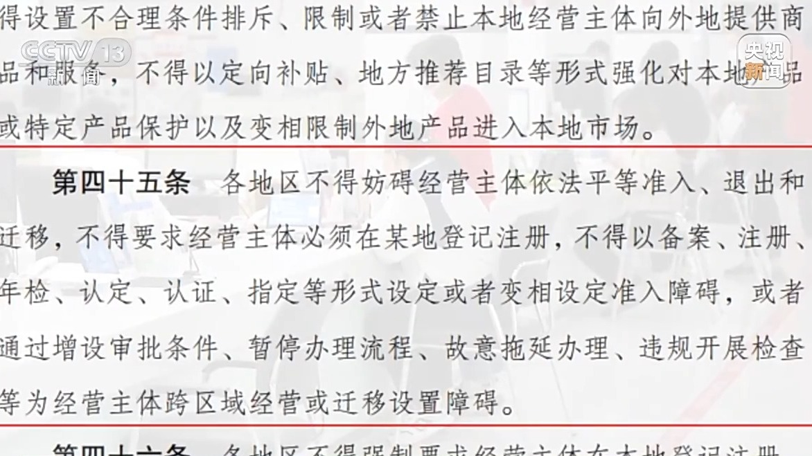 《全國統(tǒng)一大市場建設指引》強調(diào),不得以通過增設審批條件、暫停辦理流程、故意拖延辦理、違規(guī)開展檢查等為經(jīng)營主體跨區(qū)域經(jīng)營或遷移設置障礙,并將其作為加力破除地方保護和市場分割的重要舉措。