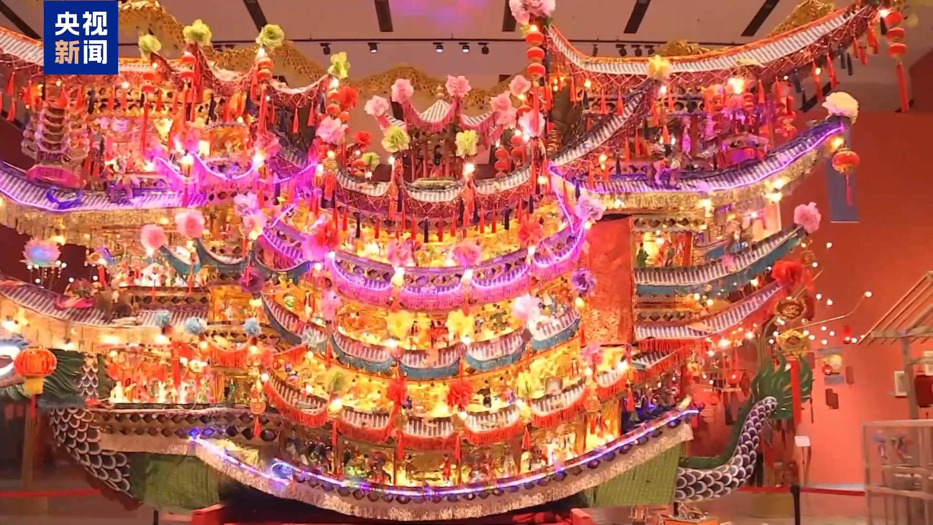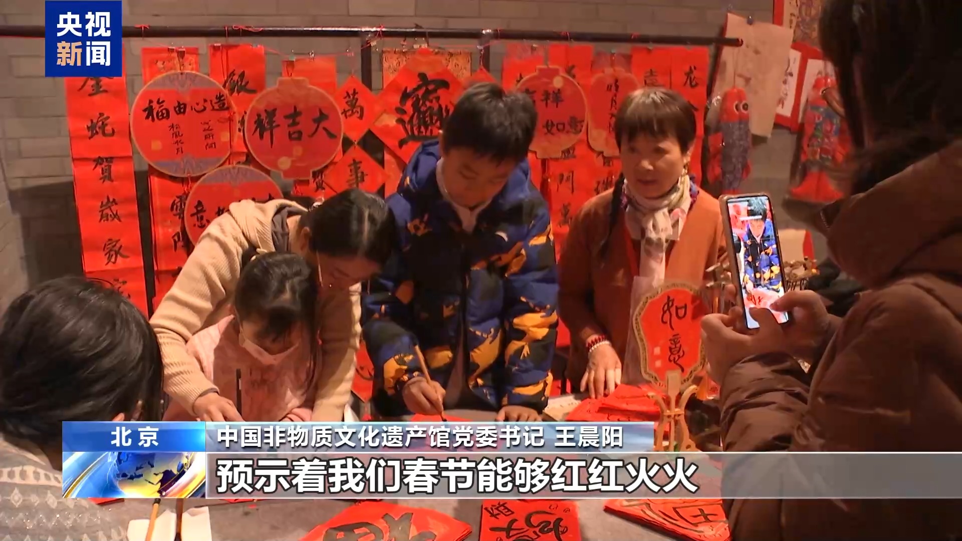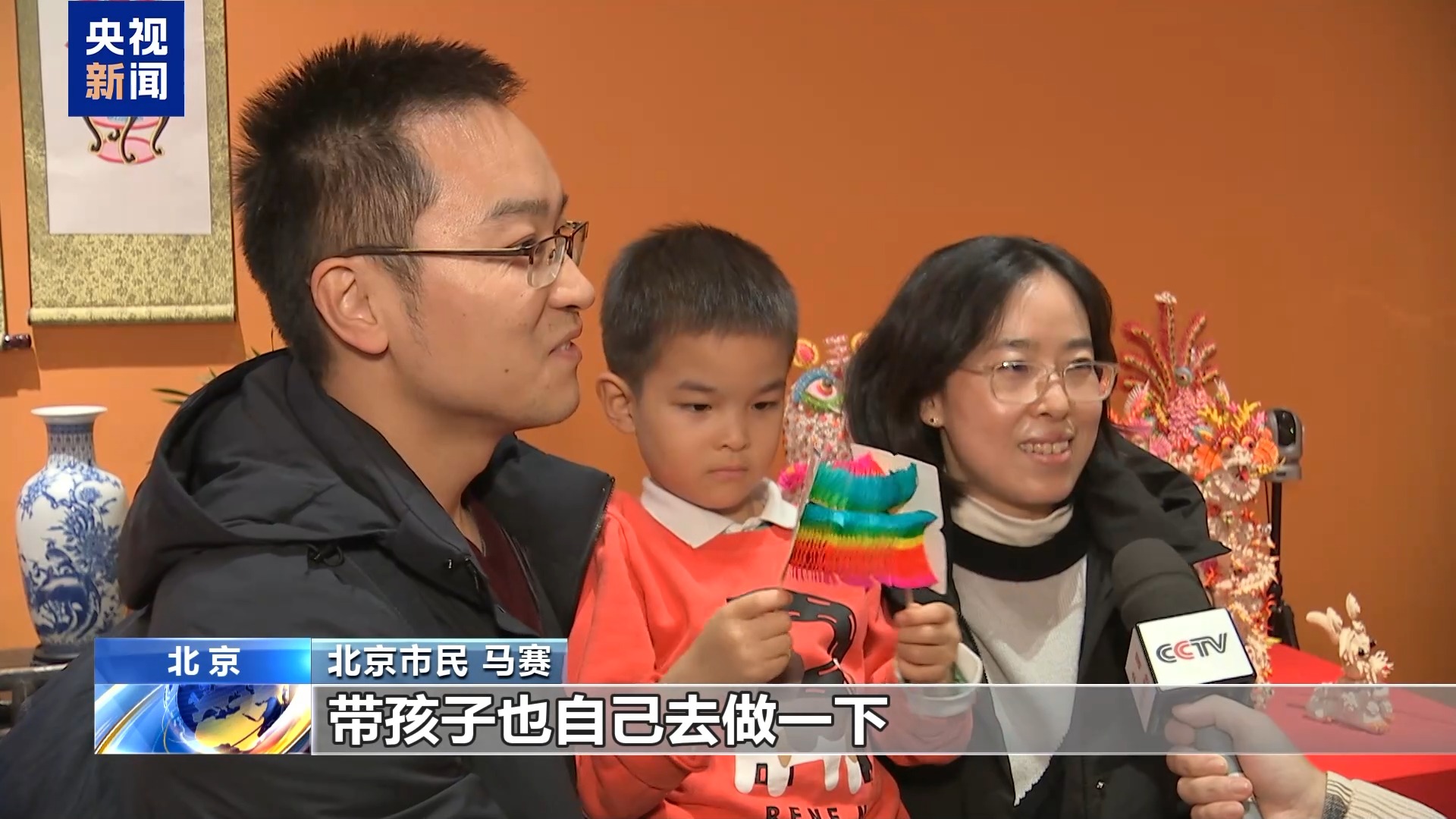 中國非物質文化遺產館黨委書記 王晨陽:在當地,彩扎門叫“鬧紅火”,預示著春節(jié)能夠紅紅火火。